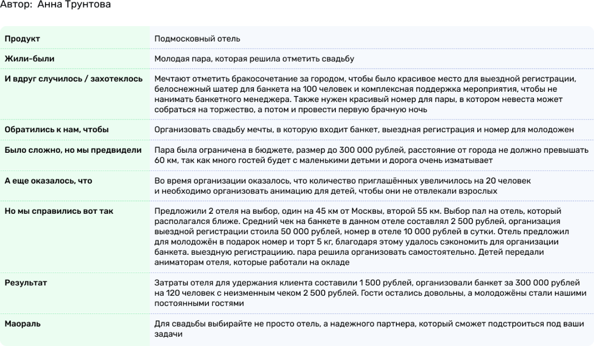 Рассказ клиента о том, как специалисты вашей компании вникли в проблему, дали нужный совет, сняли барьеры или помогли найти правильное решение, докажет, что вы профессионалы, настоящие эксперты.