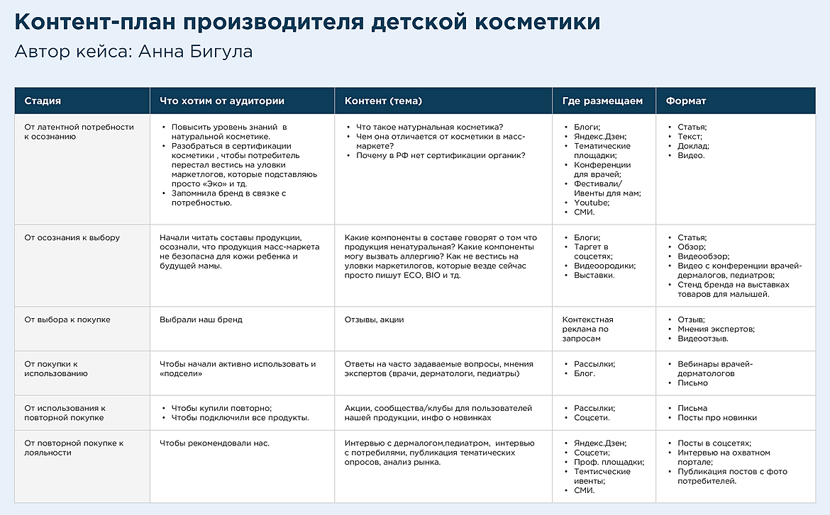 В моем примере контент-плана для интернет-магазина косметики вы найдете следующую информацию: