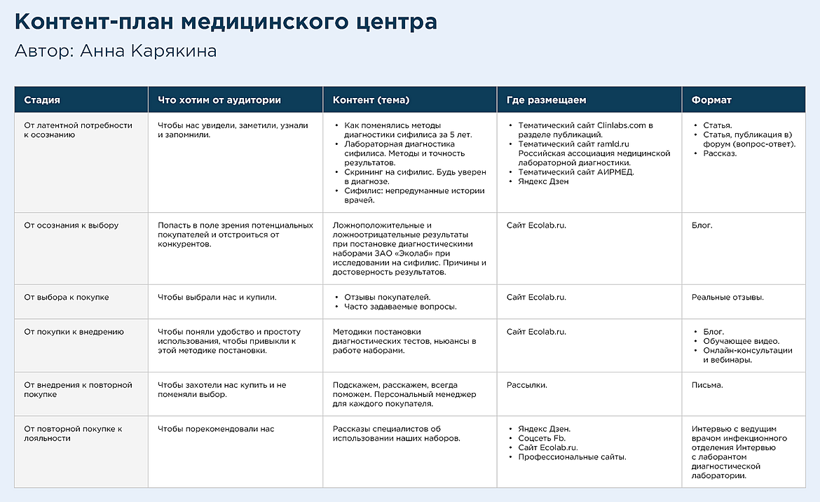 Все это поможет вам составить контент-план для медицинского центра, чтобы вы точно знали: