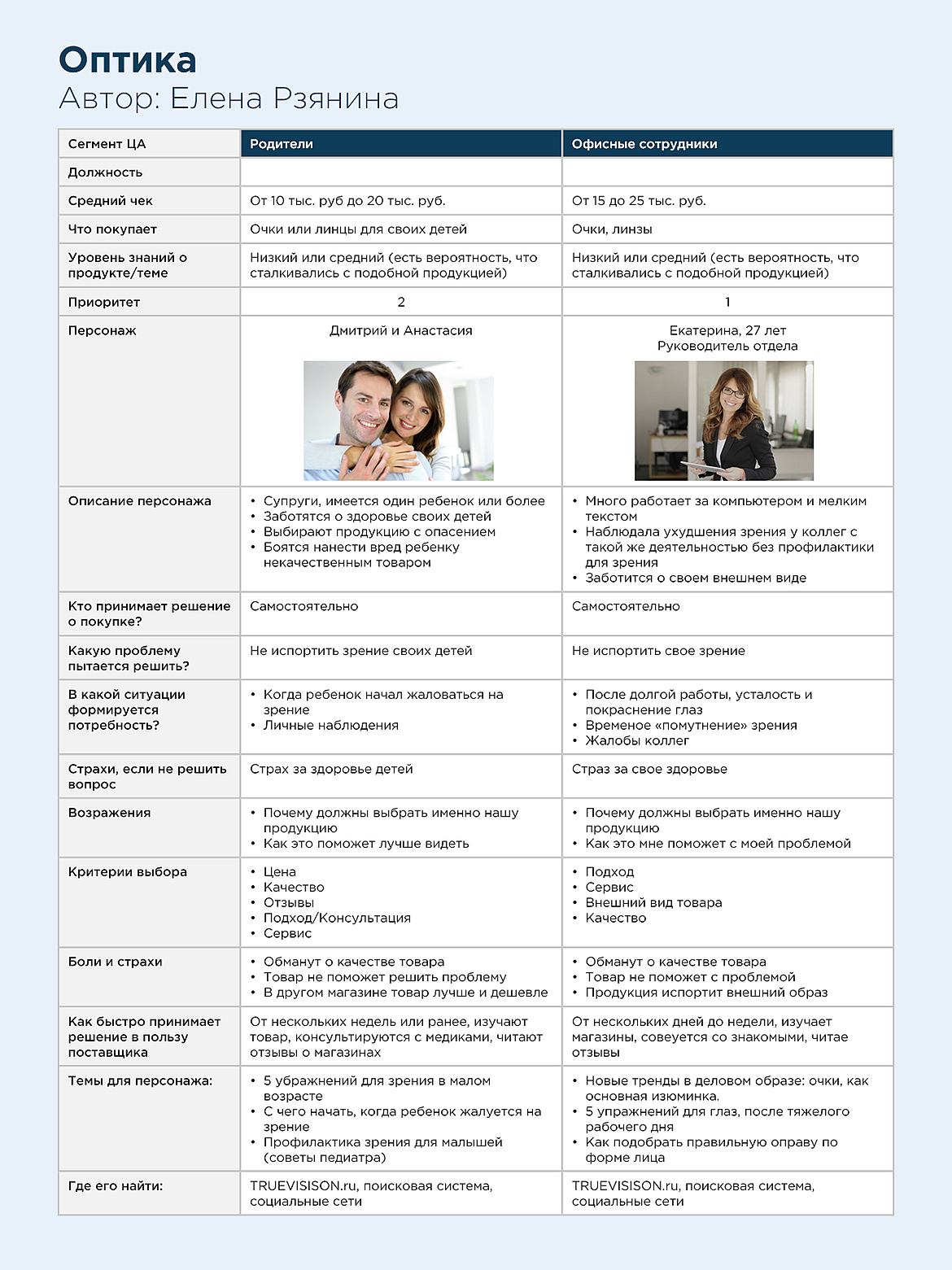 Я написала инструкцию, как составить контент-план – в ней вы найдете методику и советы. В этой статье я покажу шаблон контент-плана для салона оптики, а также возможное описание аудитории.